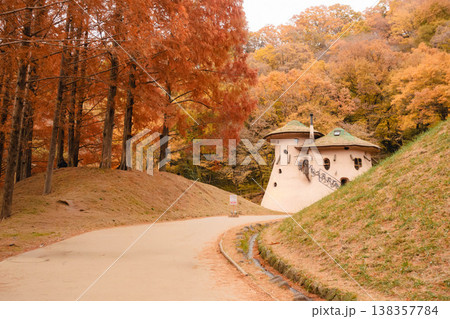 秋のあけぼの子どもの森公園に色づくメタセコイアの紅葉風景