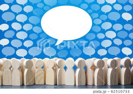 Big conversation talk cloud stands out from rest above people. Active discussion, thoughts expression. Choosing best solution fresh good idea, concession. Generally accepted opinion. Gossip and rumors
