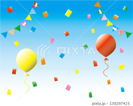 カラフルな風船と紙吹雪