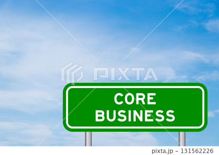 Green color transportation sign with word core business on blue sky with white cloud background