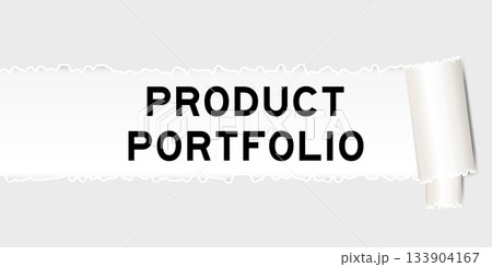 Ripped gray paper background that have word product portfolio under torn part