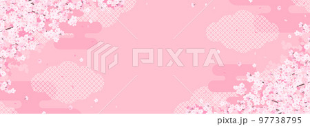 満開の桜とピンク色の雲・空 背景素材(横向き16:9)