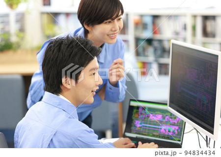 CAD画面を見ながら設計作業を進める男女の設計者_2