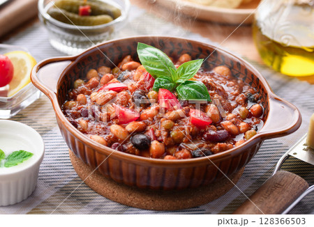 fried meat with bean and spice