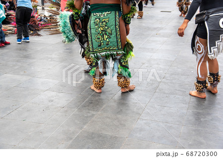 メキシコ メキシコシティ のソカロでアステカのダンスを踊る人