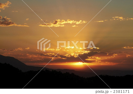世界遺産、メサヴェルデの高原から見た地平線へ沈む夕日