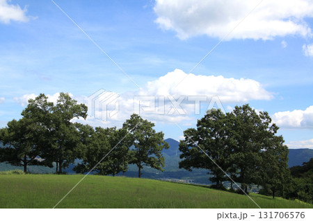 大分県玖珠町 伐株山山頂の緑の草原 爽やかな風景