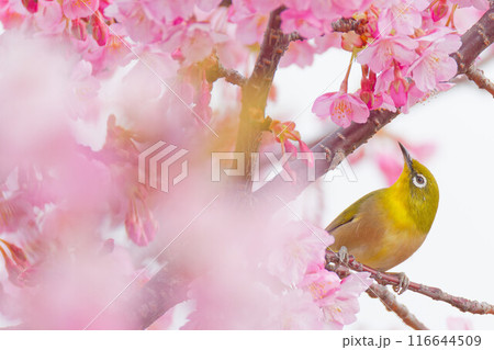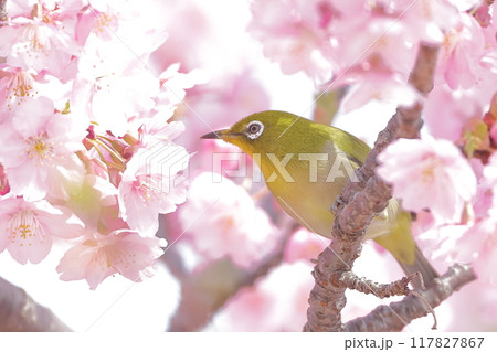 河津桜とメジロ 桜とメジロ 桜 メジロ 目白