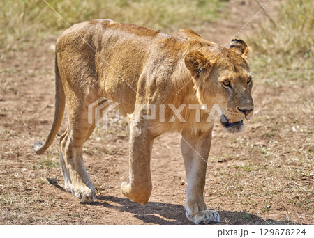サバンナを歩くライオン