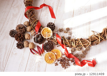 手作りクリスマスリースの材料