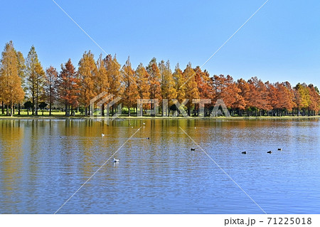 埼玉県さいたま市大宮けんぽグランド メタセコイヤ並木と池
