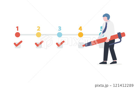 Worker swinging a pickaxe, pencil beside him, three circles, and check mark below. Ideal for productivity, labor, hard work, effort goal setting motivation task completion. Line metaphor