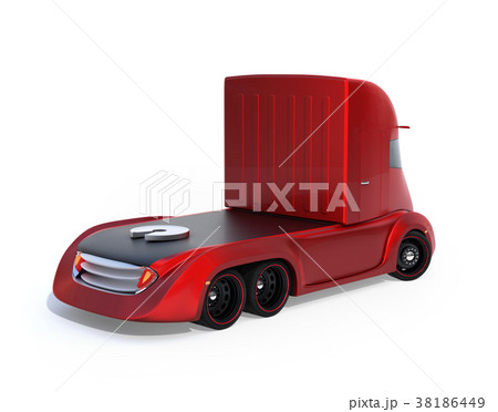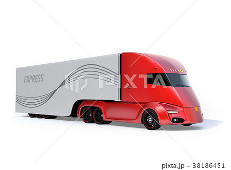 白バックにメタリックレッドの自動運転電動セミトラックのイメージ
