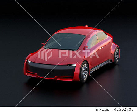 黒バックにカーシェアリング用赤色電気自動車のイメージ