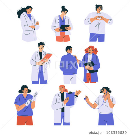 Man and Female Doctor Character as Professional Hospital Worker Vector Illustration Set