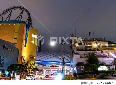 日本の東京都市景観 後楽園駅や東京ドームなどを望む