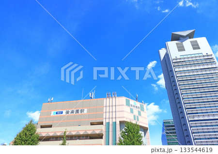 東京都、東京メトロ後楽園駅と文京区役所の風景