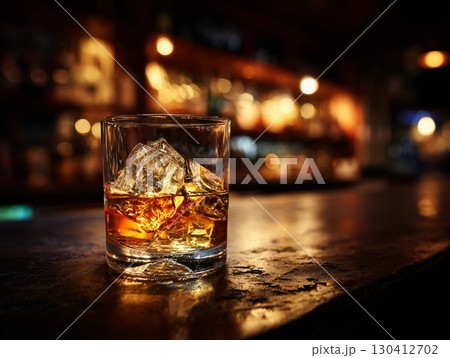 ウイスキーロック|バーカウンター、お酒、晩酌、リラックス、高