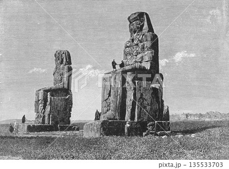 19世紀のイラスト アフリカ メムノンの巨像