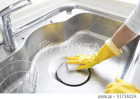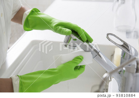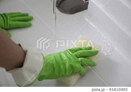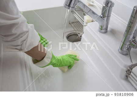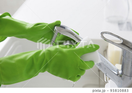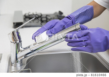 ゴム手袋でシンクの掃除