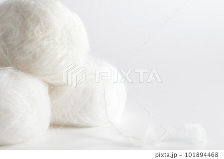 モヘアの白と紫(パープル)の毛糸玉 クローズアップのイメージ