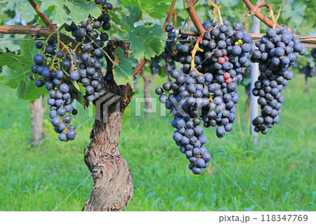 葡萄の房、ブドウ畑、メルロー、メルロ