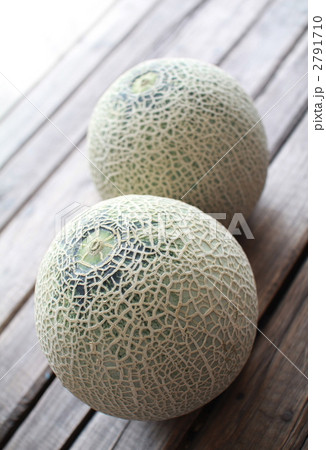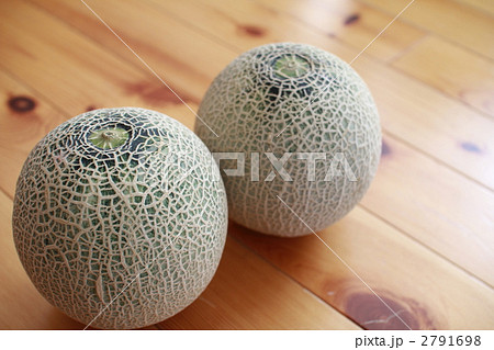 並べた2個のネットメロン 茨城産アンデスメロン
