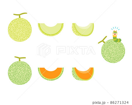 果物イラスト メロン一玉とカットしたメロン