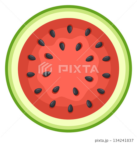 Watermelon slice. Ripe red cut watermelon. Hand drawn flat style summer fruit.