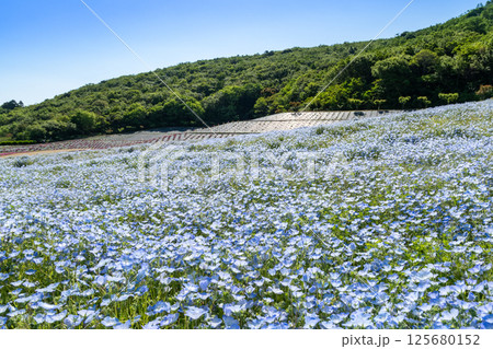 満開のネモフィラ(メンジェシーとマクラータ) 三重県志摩市
