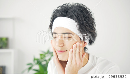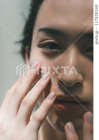 スキンケアをする若い男性