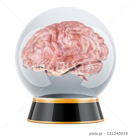 Crystal ball with human brain inside. 3D rendering