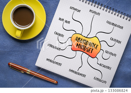 abundance mentality, law of attraction and positive mindset, mind map sketch