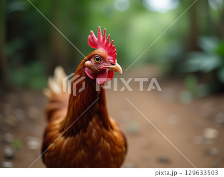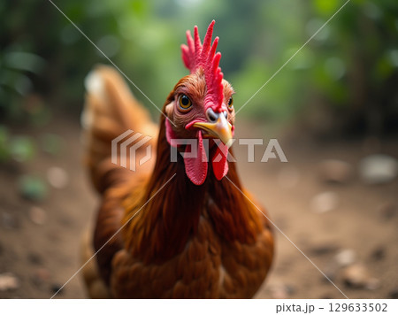 Close-Up Portrait of a Beautiful Brown Chicken in Natural Lighting