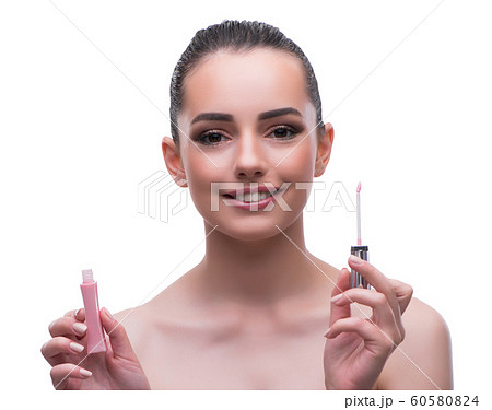 Woman in beauty concept applying make up using cosmetics