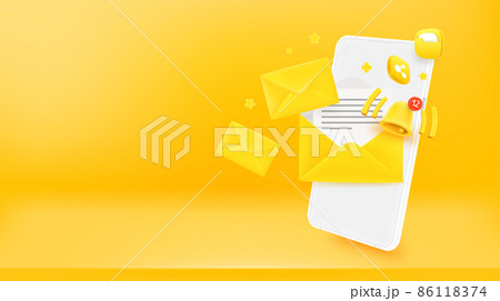 Sending and receiving messages via modern mobile phone. 3d vector banner with copy space