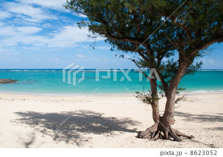 沖縄県宮古島 湾とモクマオウの枝フレーム