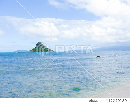 ハワイの青い海とチャイナマンズハット オアフ島 クアロア・リージョナル・パークにて