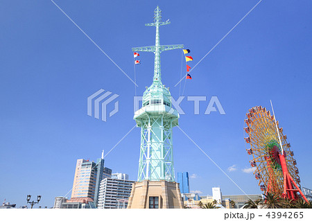 【兵庫県】晴天の旧神戸港信号所とモザイク観覧車(神戸ハーバーランド)