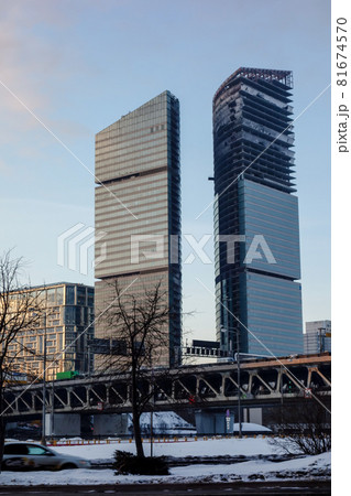 モスクワの街並み 近代的なガラス張りの高層ビル群