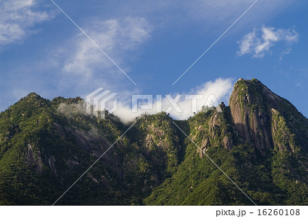 屋久島世界自然遺産の山モッチョム岳(7月)日差しを浴びてきれい