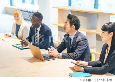 会議する多国籍ビジネスパーソンのグループ