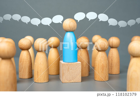 The blue man leads the people against the red man. The concept of supporting the majority against the opponent. An opposition political movement. Democracy against authoritarianism