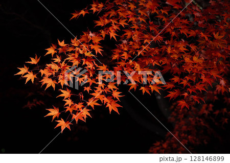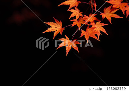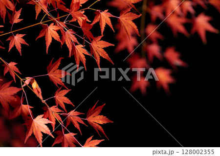 【紅葉素材】黒バックで撮影する紅葉したもみじの葉【長野県】