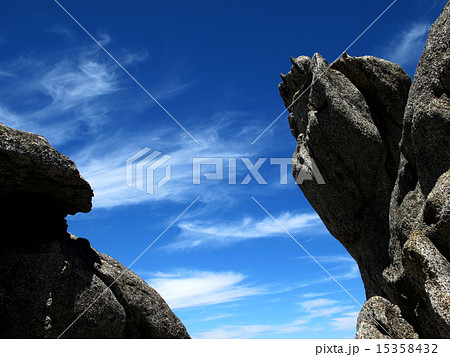セコイア国立公園モロロック 奇岩の岩山と青空の光景