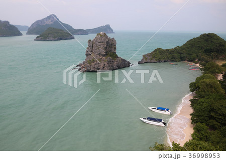 Speed boat,beach and island in the monsoon weather