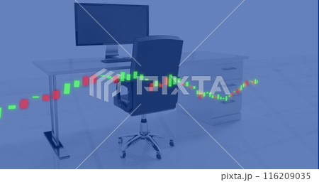 Image of trading board and binary codes over graphs, globe and computer language in background