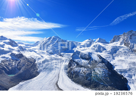 ゴルナーグラードから ゴルナー氷河越しのペンニネアルプスの山々の絶景 スイス ツェルマット