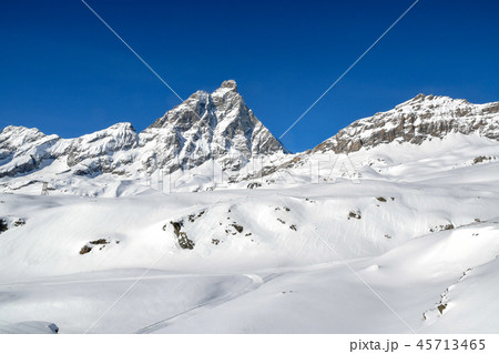 モンテ・チェルヴィーノ(イタリア側から見たマッターホルン) プラトー・ローザより(3月、イタリア)