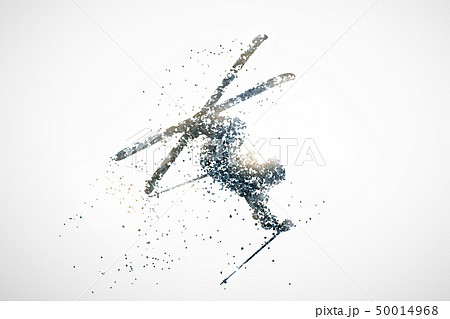 点描画風のスキージャンプのシルエット、PNG背景透明